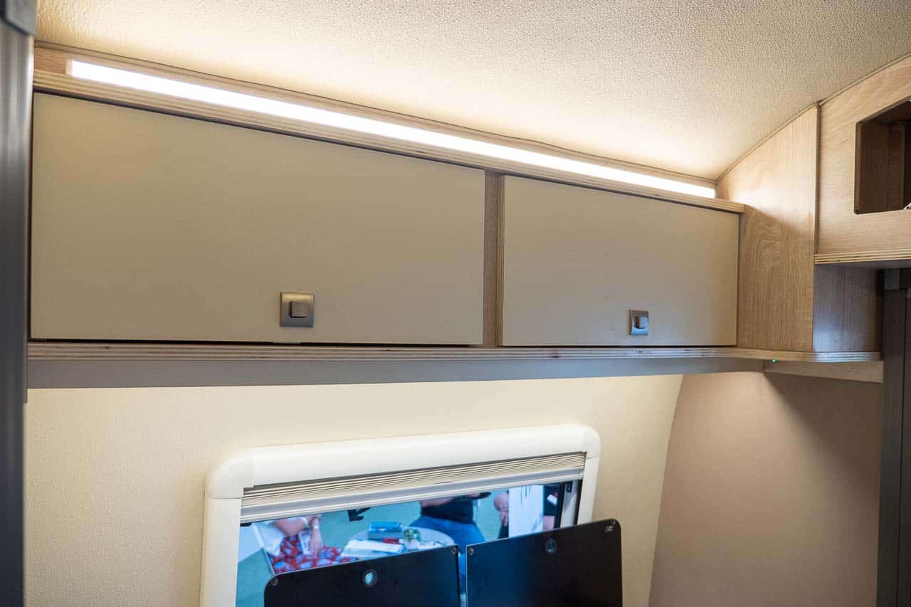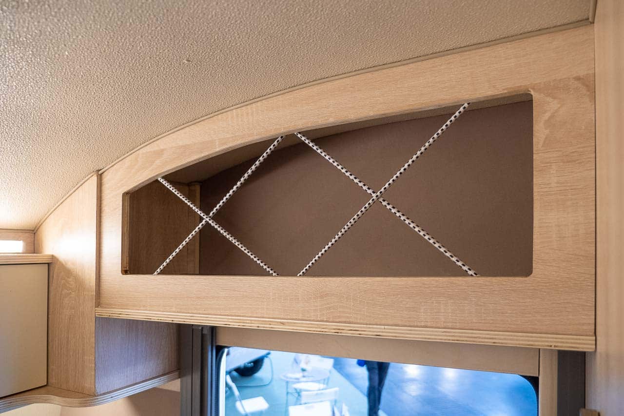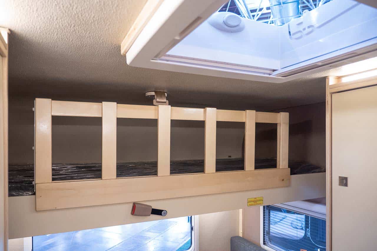 También se puede utilizar opcionalmente la litera situada encima de la zona de asientos, para que puedan dormir hasta tres personas en la minicaravana.
