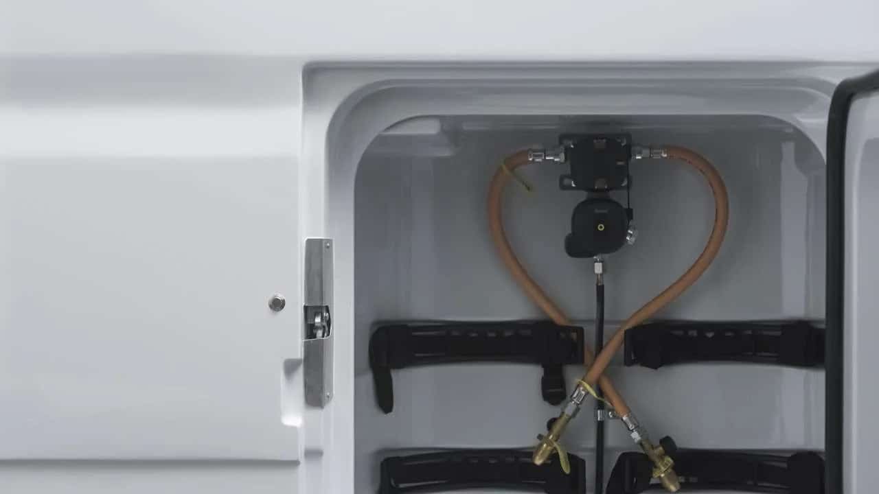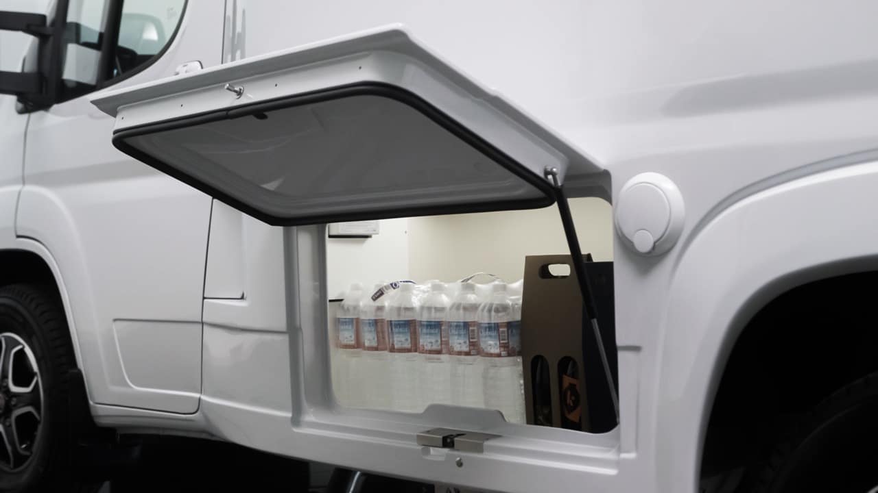Hay un armario integrado en la zona trasera, junto al cuarto de baño, para poder guardar la ropa ordenadamente. También hay dos trampillas con espacio de almacenamiento y una caja de gas para dos bombonas en la zona exterior.